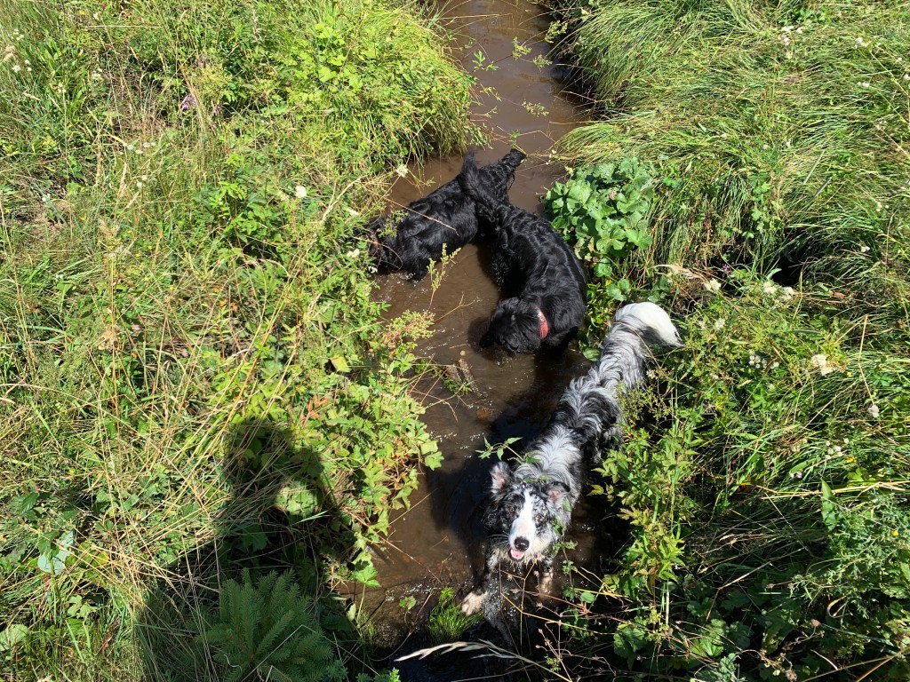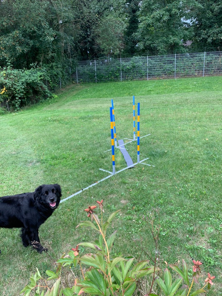 Meine schwarzen Hunde sind momentan ein bisl gehandicapt. Der große schwarze Hund ist jetzt ca. 8 Wochen kastriert. Es geht ihr sehr gut damit. Sie ist lustig und gut drauf. Bisher bereue ich es nicht. Allerdings hat sie immer noch 2 kg zu viel, die aber nicht weichen wollen. Und der kleine schwarze Hund liebt Frisbee mehr als Agility. Das merkt man sehr deutlich, aber sie ist bei beidem mit Spass dabei. Kommende Woche haben wir noch mal einen Kontrolltermin in der Klinik. Ich denke es ist alles in Ordnung. Trotzdem bin ich ein bisl kribbelig. Onyx geht dafür morgen mit mir zur Physio. Ja, auch ich gehe „fremd“ wenn es um meine eigenen Hunde geht 😀 Ende September habe ich die drei „Großen“ beim Agi gemeldet. Onyx natürlich im Seniorprogramm. Ich hoffe, dass wir das schaffen, vorallem ich. Ich brauche wahrscheinlich ein Sauerstoffzelt danach.