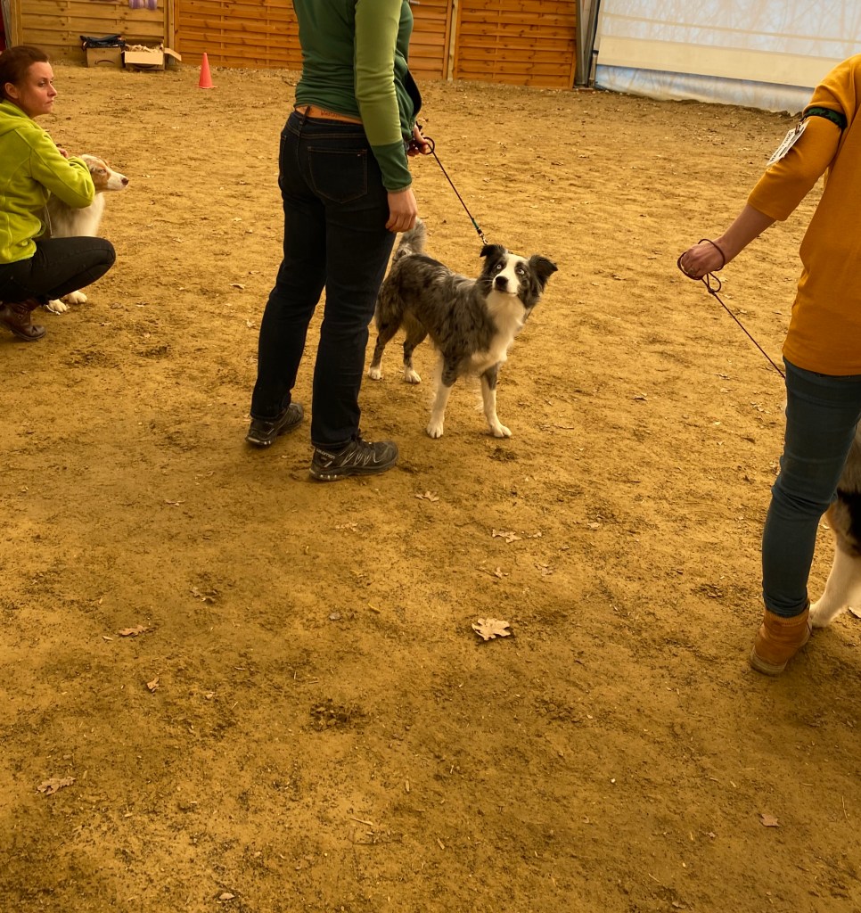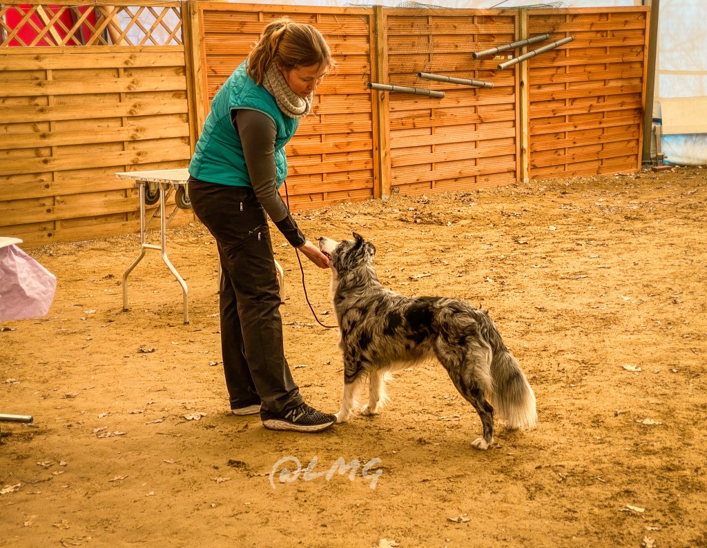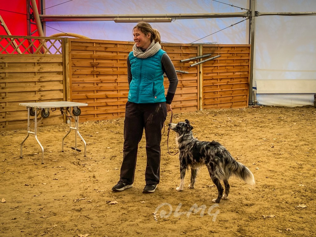 Lilith war wieder eine ganz andere Geschichte. Der Hund vor uns war sehr aufgeregt und laut, ebenfalls nicht begeistert von fremden Menschen und der seltsamen Atmosphäre. Ich muss zugeben, ich war mir auch nicht sicher, ob Lilith sich noch einmal anfassen lässt, aber die Richterin hatte sehr viel Geduld. Ich bat sie auf einen Tisch stellen zu können. Das ist für sie eine Tierarztsituation, die kann sie aushalten. Wir bekamen sogar einen sehr netten Körbericht mit der Notiz, dass der Hund sich mit fremden nicht wohlfühlt. Nun gut. Das muss sie hier auch nicht. Und, es ist ein Aussie. Die sind eher bekannt dafür, dass sie Fremde jetzt nicht mega gut finden. Normalerweise ist Lilith auch eher desinteressiert an Menschen (es sei denn man kennt sich, dann ist das Gegenteil der Fall), aber hier gar es für sie eben nicht die Möglichkeit sich zu entziehen und Platz zu schaffen.