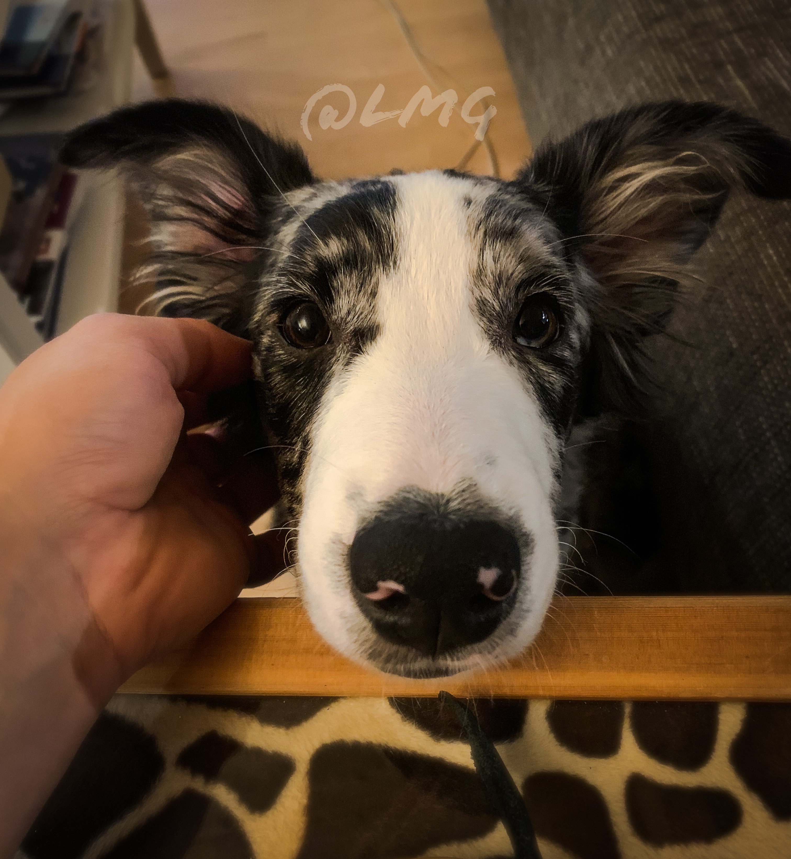 Noch so ein Ding: Ihr zu erklären, dass man ÜBER Hindernisse springt war auch eine längere Sache 😅 Mama Rán hatte das übrigends auch. Das interessantes Alltags“problem“ war das stoppen von Autos, die auf uns zu kamen (später dann Inliner). Famy jagt nicht. Sie ist aufmerksam und läuft auch mit, wenn jemand sich entschließt hinter einem Vogel oder Reh her zu laufen, aber ihre eigene Intension ist das nicht. Sie schaut Rehe an, meldet, geht zum Menschen, meldet wieder und wird wirklich aufdringlich, wenn man ihr nichts dazu sagt. Rückendeckung ist ihr sehr wichtig. Die Autosache hat uns ungefähr 6 Monate gekostet. Ich habe jeden Tag mit ihr am Parkplatz des Geschäfts hier die Straße runter gesessen und Kiloweise Leberwurst verfüttert. Erst aus der Ferne, dann immer näher. Dann am Parkplatzeingang, dann auf der anderen Seite am Bahnhof, dann sind wir an die große Straße gewechselt. Jetzt schaut sie zwar noch immer Autos an, aber kommt nur noch selten zu mir, schiebt die Nase in meine Hand und holt sich ein bisschen Sicherheit ab. Sie braucht Zeit sich Situationen und Dinge an zu schauen. Sonst wird sie hektisch oder verbellt oder friert ein.