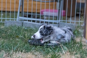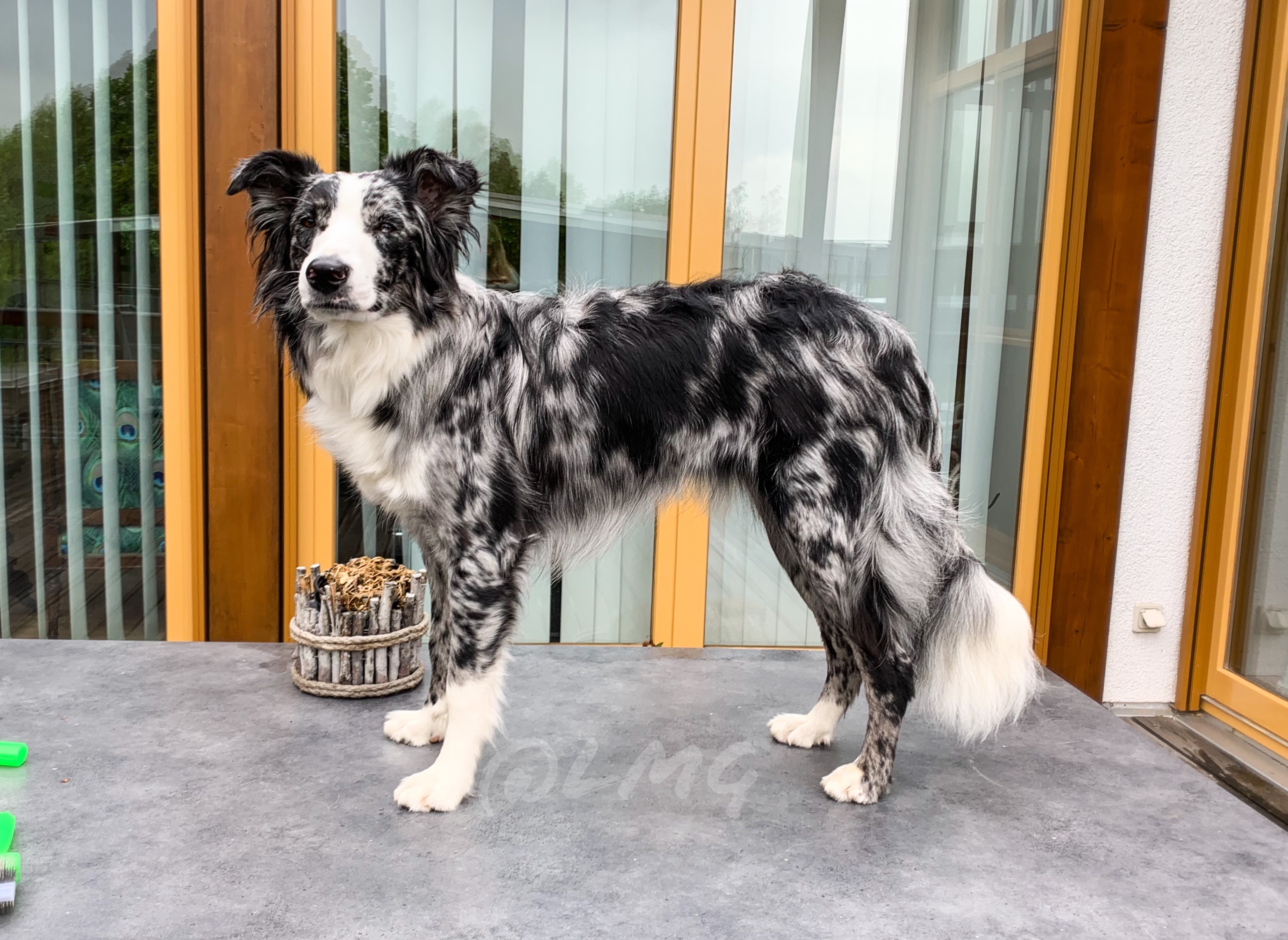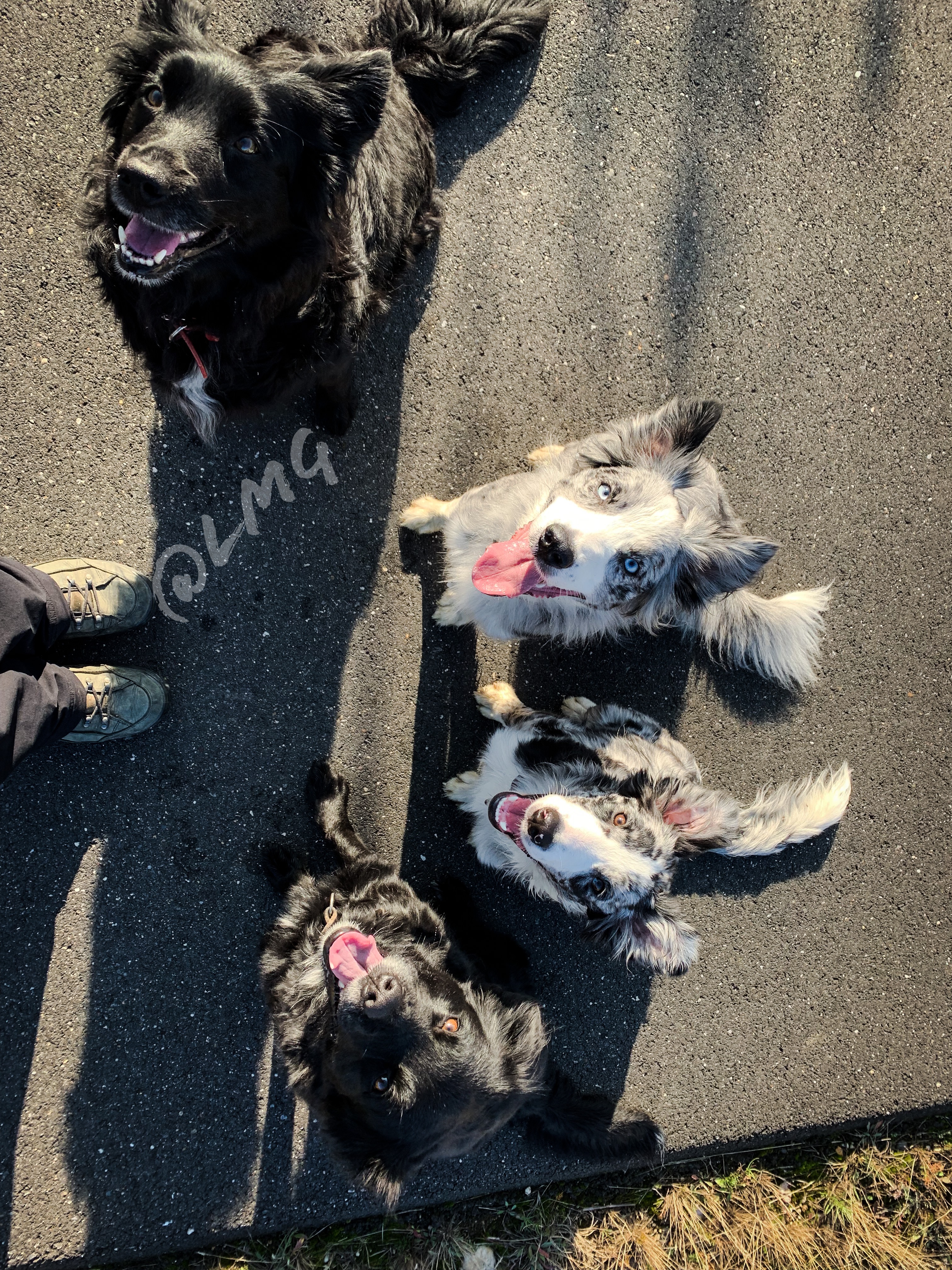 Famy war eigentlich von Anfang an versprochen, denn es gab einige Welpeninteressenten die eine Hündin wollten. Und Interessenten die „eine Hündin für ihren Rüden“ oder „einen super triebigen Agi Hund wollten, gabe es genug. Loki (LMG Dr. I.Q.) sollte ein Mädchen werden. Genau so Blade (LMG Boom!). Der kleine Professor Loki, schon als Welpe immer bemüht zu gefallen, zog aus ein Rettungshund zu werden. Mittlerweile ist er Reitbegleitund und geht mit seinem Bruder Luc auf große Wanderungen. Blade, der zuckersüße, verkuschelte, kleine Mann, lebt mit zwei Mädels zusammen. Luc, der Erstgeborene und von der Zeichnung her der Auffälligste, zeigte schon früh, dass er ein Rabauke ist. Seine Mama sorgte immer wieder dafür, dass er zurück in den Welpenauslauf ging – wenn auch unter Protest und sehr, sehr nachdrücklich aufgefordert von Mama – war das Schauspiel immer wieder sehenswert. Mutti Rán, die in aller Ruhe den Zwerg ins Welpengitter „hütete“, sich dann vor die Öffnung legte und wartete, bis er sich wieder beruhigt hatte. Dann war er aus seiner „stillen Ecke“ entlassen. Sobald er wieder hoch fuhr, begann das Spiel von Neuem. Die Jungs hingen meistens zusammen. Luc voraus, die anderen hinterher. Loki meistens kurz abwartend, aber dann kugelte er hinterher. Das Schwesterchen… hatte andere Pläne.